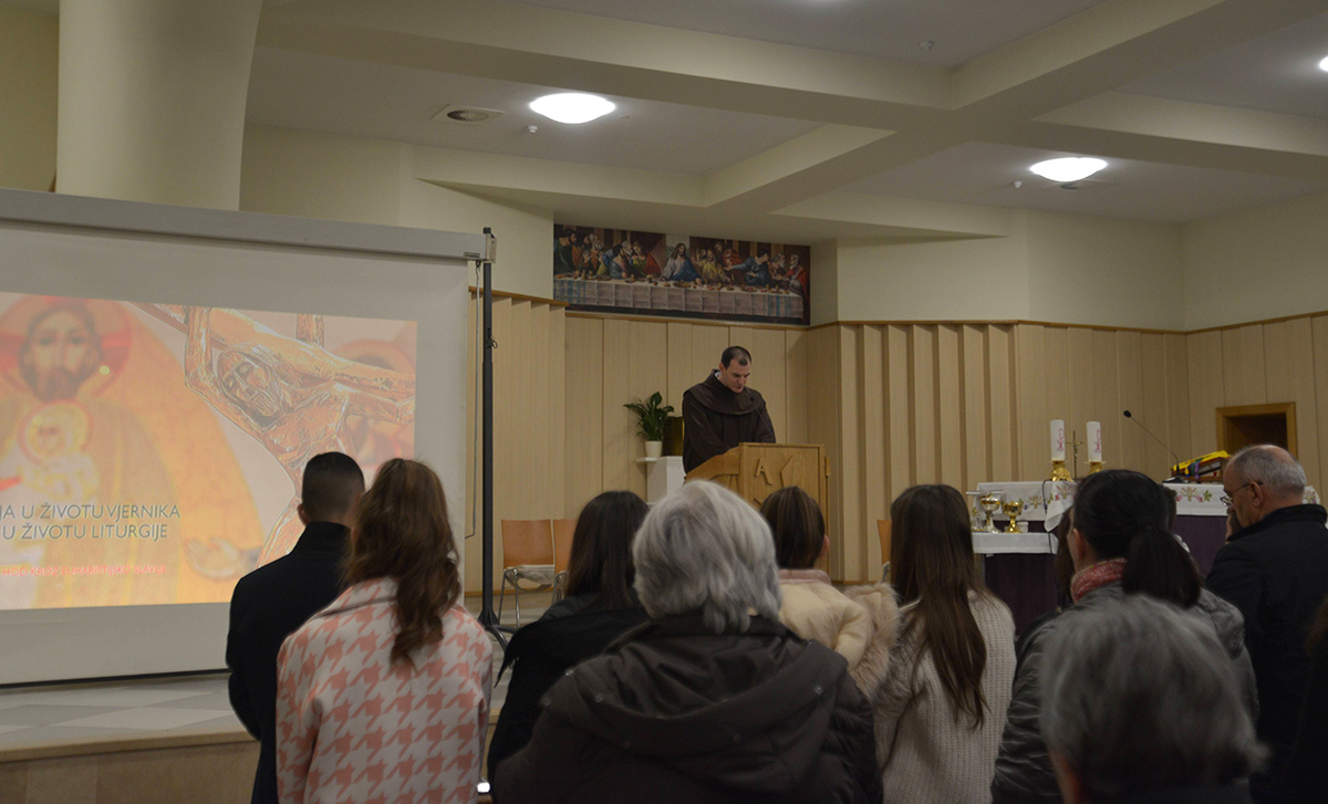 Bogoslužje nije ništa drugo nego vršenje Kristove svećeničke službe. To je nešto što se ne događa bez nas, ali se događa u nama. Bog zahvaća u naš život“, kazao je fra Bojan i dodao je da bogoslužje susret nas i Boga, zajednice vjernika i Boga. „Nije to samo ljudsko djelo, uredili crkvu, stavili cvijeće, i sad je to naše djelo i slavlje koje će ovisiti o zabavnosti svećenika. Pa tako danas često čujemo da netko ide na misu jer je svećenik zanimljiv ili ne ide jer je svećenik nezanimljiv. To ne smije biti opravdanje, jer svećenik je u službi Gospodina, baš kao i narod. Sveta misa nije nešto što mi činimo, nego što Bog čini. Djelo spasenja se prenosi kroz obredni čin. U svetoj misi se događa susret: neba i zemlje. Prisutna je ta katabatska dimenzija, a to znači da se Bog spušta k nama,da je Bog onaj koji nama dolazi u susret, da je Bog onaj koji nas želi susresti i podići. Druga dimenzija je ona anabatska, a to je ono što mi činimo; da se mi uzdižemo prema Gospodinu Bogu, da mi želimo ići prema Njemu koji nam daruje svoje spasenje. Upravo zbog toga, kaže Crkva, da bogoslužju nije ravno niti jedno drugo djelo Crkve. Crkva danas djeluje moćno; ima vrtiće, škole, organizira mlade, pomaže siromašnima. Ali Crkva kaže ne, to nije naše poslanje. Naša služba je vršiti bogoslužje, uprisutnjivati Krista, to je naše prvotno činjenje – dopustiti da Njegova riječ postane moj život. To je naše poslanje, da ono što slavimo ovdje, mi sada izvršavamo svojim vlastitim životom. Bogoslužje je vrelo iz kojeg struji sva snaga Crkve“, kazao je fra Bojan. „Mi kršćani ćemo izgubiti razloge opraštanja ako ne crpimo svoj život na bogoslužju crkve“, kazao je fra Bojan.