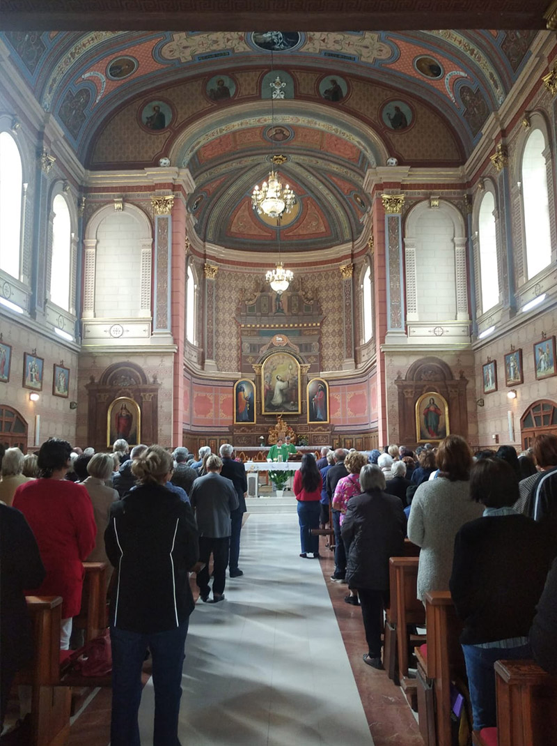 U 10,30 sati je počela krunica i prigoda za svetu ispovijed. Crkva je bila prepuna. Dobrodošlicu hodočasnicima iz Posušja i drugih mjesta uputio je vlč. Jakov Kajinić, duhovnik sjemeništaraca u Nadbiskupskom sjemeništu Petar Barbarić. Misno slavlje predslavio je vlč.Marko Majstorović, župnik župe Uzašašća Gospodinova iz Novog Travnika.