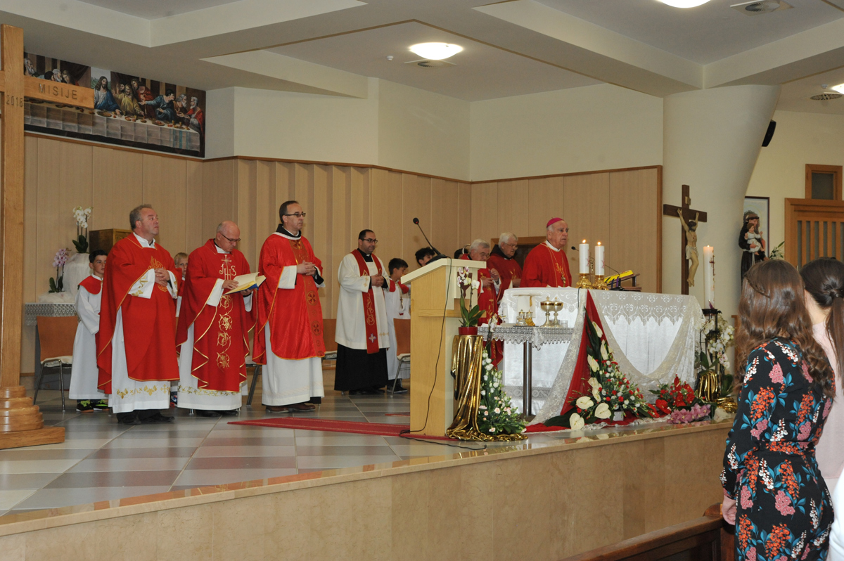 Biskupa je na početku misnoga slavlja uime ovogodišnjih krizmanika pozdravio Filip Zlopaša, a cvijeće je biskupu uručila krizmanica Josipa Marić. Prvo čitanje iz Djela apostolskih pročitala je krizmanica Lucija Karamatić, a drugo čitanje iz Pavlove Poslanice Galaćanima krizmanik Jerko Oreč. Molitvu vjernika, s ukupno šest zaziva, čitali su: krizmanice Lucija Čutura, Marija Budić, Mila Bešlić, Cvita Lončar, Marija Bešlić te krizmanik Ivan Brkan. Svečano je misno slavlje pjesmom uzveličao veliki župni zbor "Fra Grga Martić" pod ravnanjem s. Marine Ivanković.
